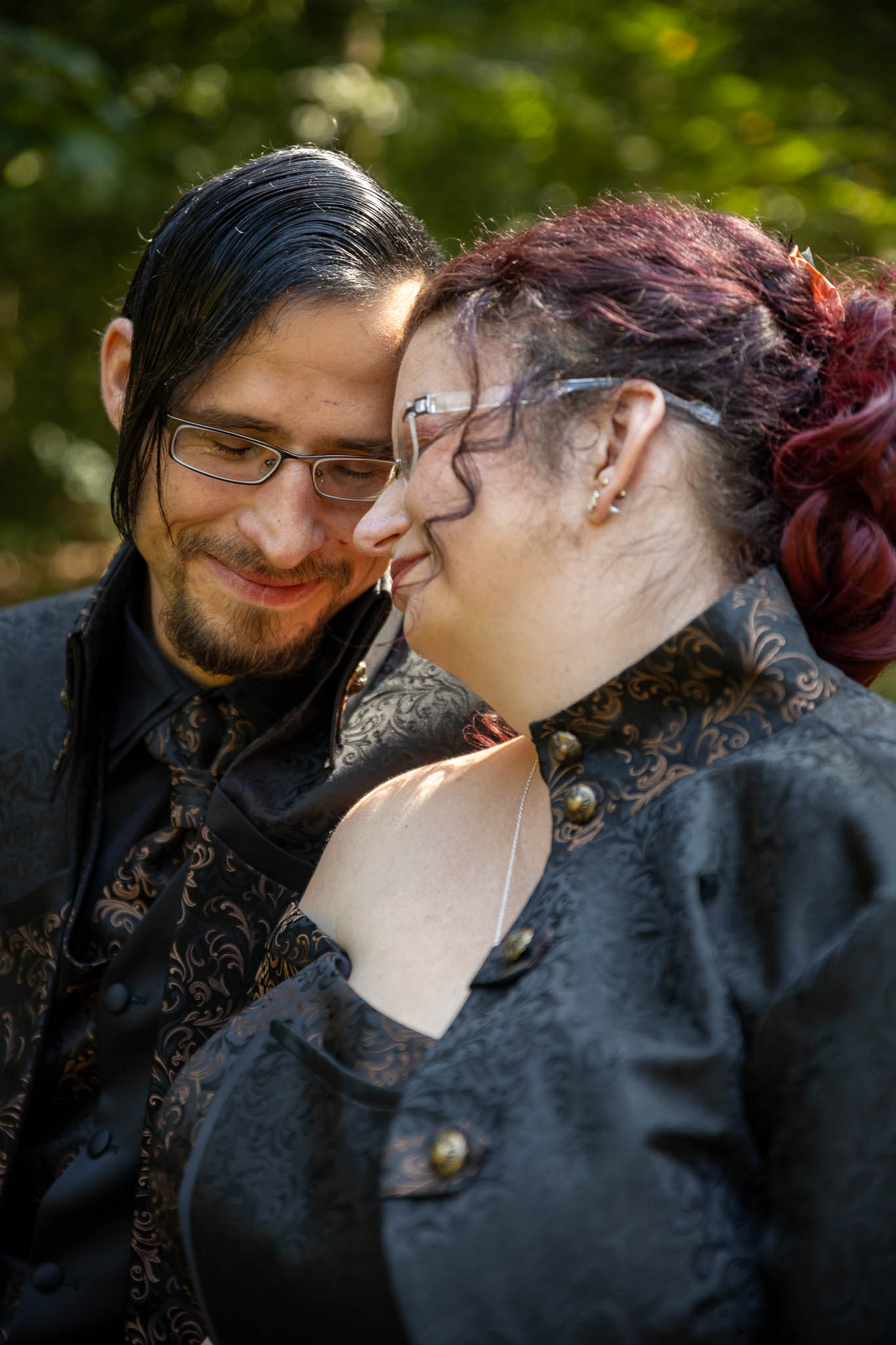 Martina und Marco hatten sich entschieden, ihre Liebe in einem wahrhaft einzigartigen Rahmen zu feiern. Ihre Hochzeit war eine faszinierende Symbiose aus der dunklen Ästhetik, die sie beide so sehr lieben, und der Magie historischer Orte, die ihre Verbindung auf eine tiefere, fast mystische Ebene hoben. Es war ein Tag, an dem sich Romantik und Gothic-Stil in perfekter Harmonie vereinten, um eine unvergessliche Feier zu schaffen. Von der imposanten Kirchenruine Sankt Salvator im Steinbachwald bis hin zur mittelalterlichen Atmosphäre der Burg Abenberg – diese Hochzeit in Schwarz war ein Meisterwerk der Individualität.