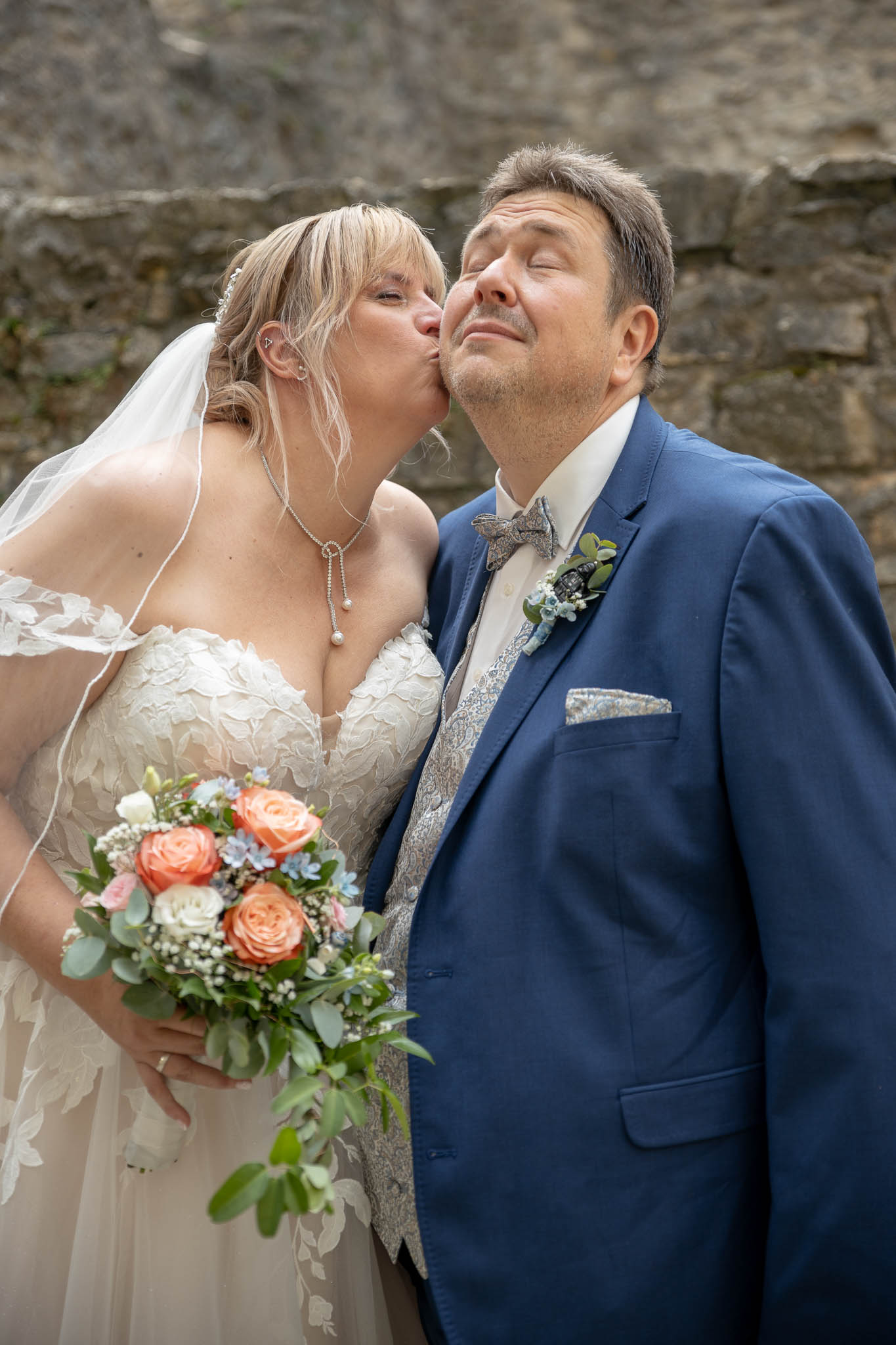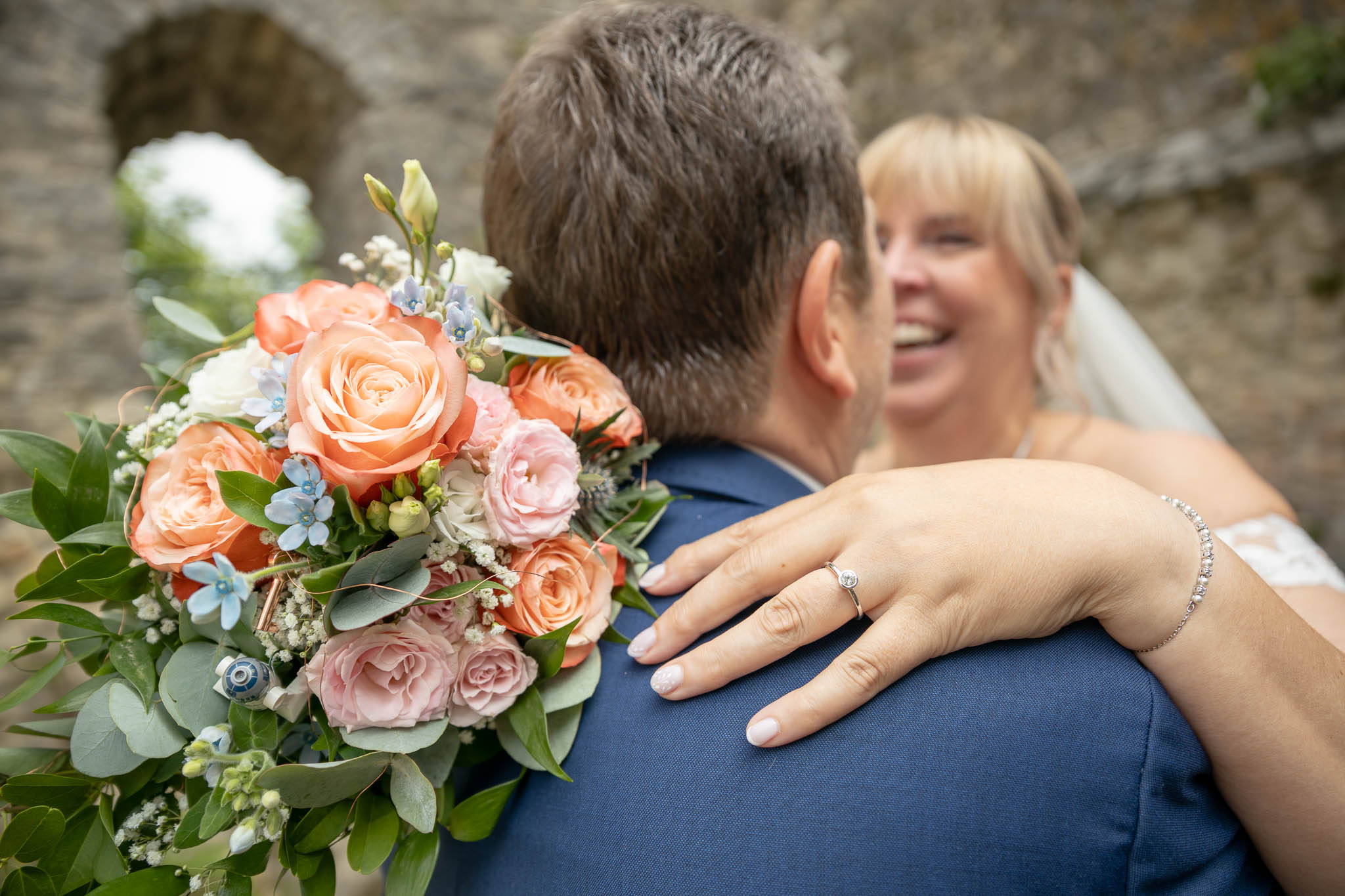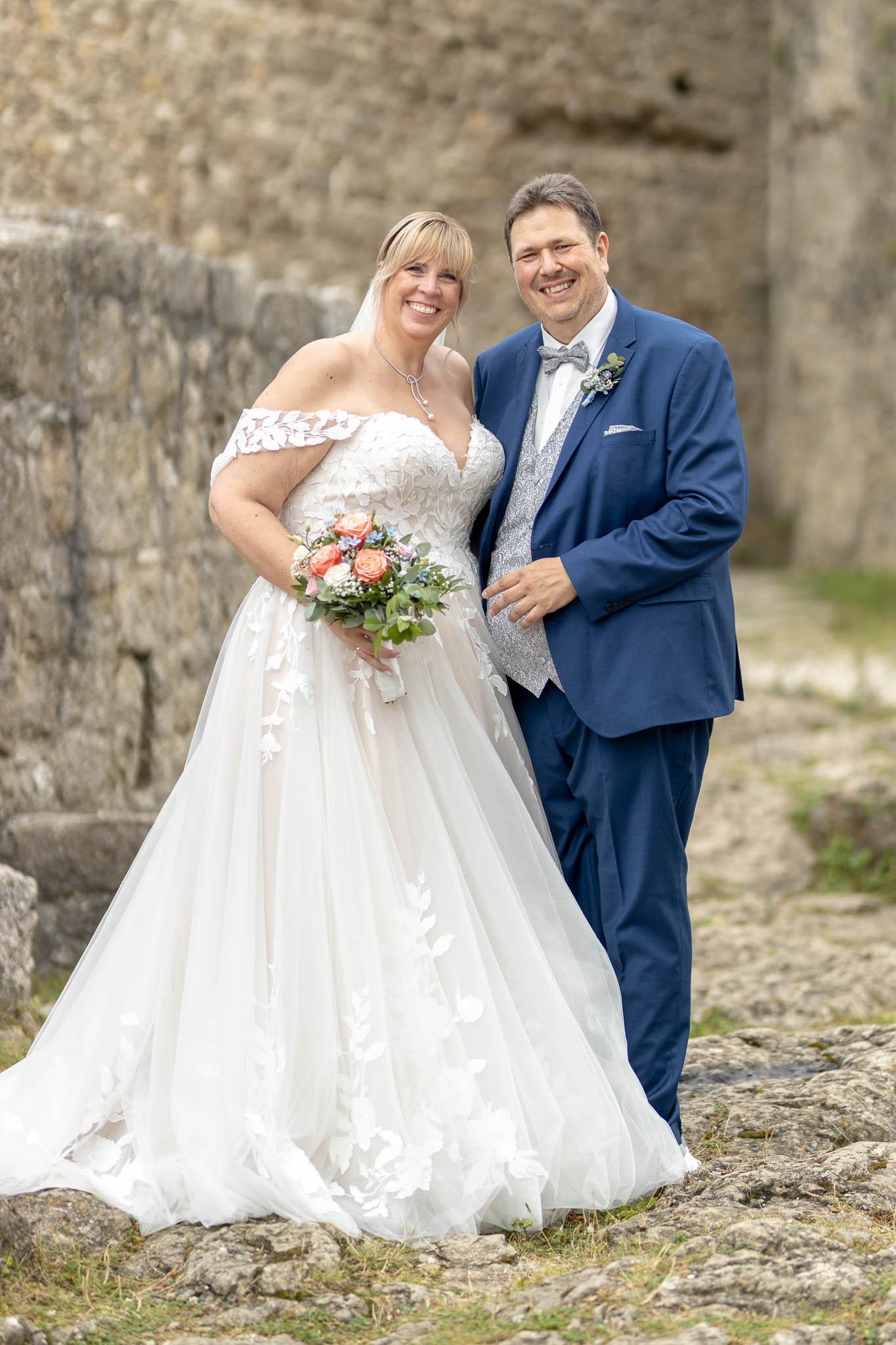 Als Karsten seine zukünftige Braut Betty zum ersten Mal in ihrem atemberaubenden Brautkleid von Hanna Jech sah, konnte er seine Emotionen nicht zurückhalten. Es war ein unglaublich bewegender Moment, als er, mit Tränen in den Augen, die Schönheit seiner Braut bewunderte. Betty, ebenso ergriffen, musste ebenfalls zum Taschentuch greifen. Diese intensiven Gefühle, eingefangen in den historischen Gemäuern der Burg, machten das First Look Shooting zu einem der emotionalsten Momente des Tages.