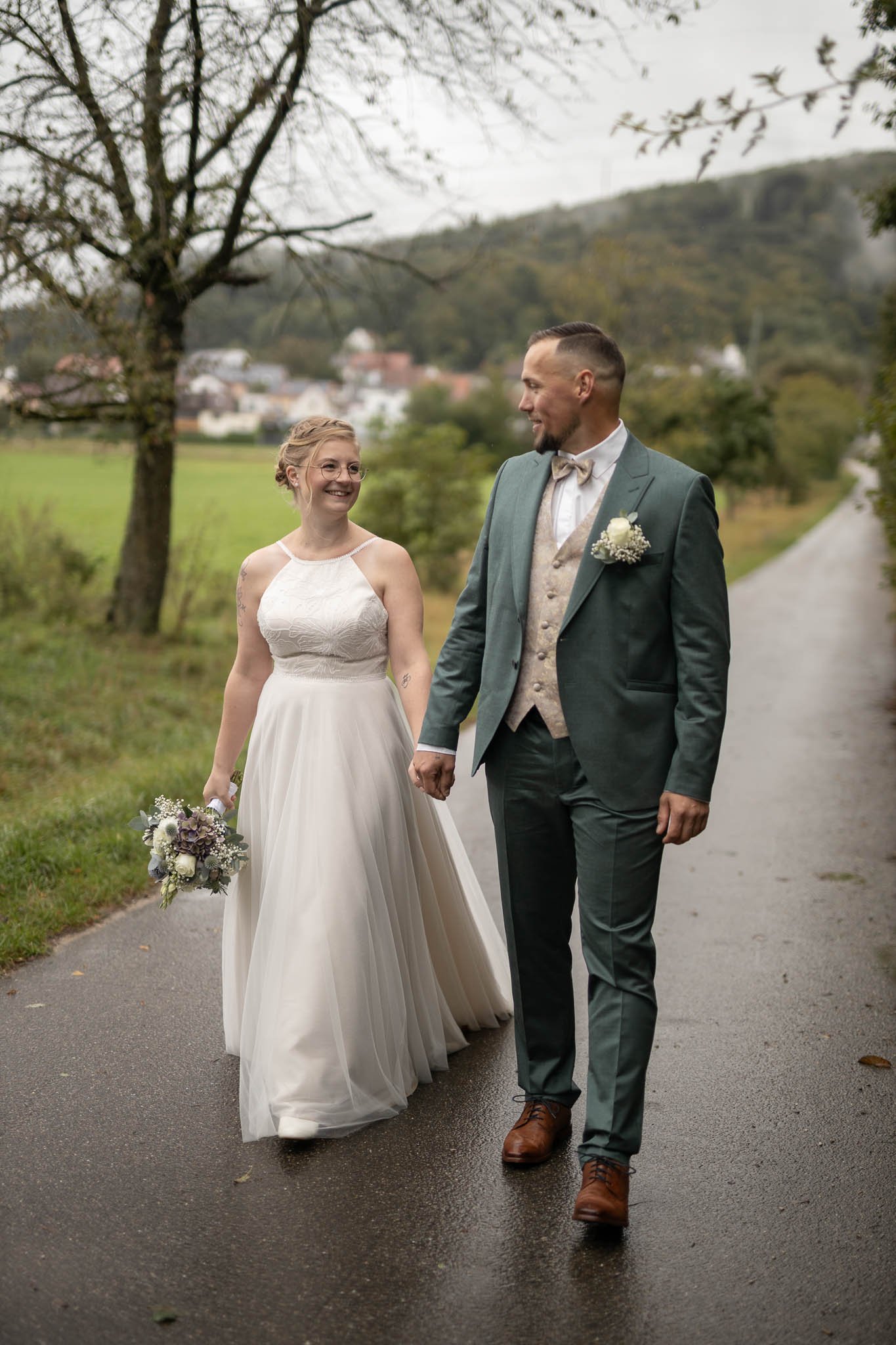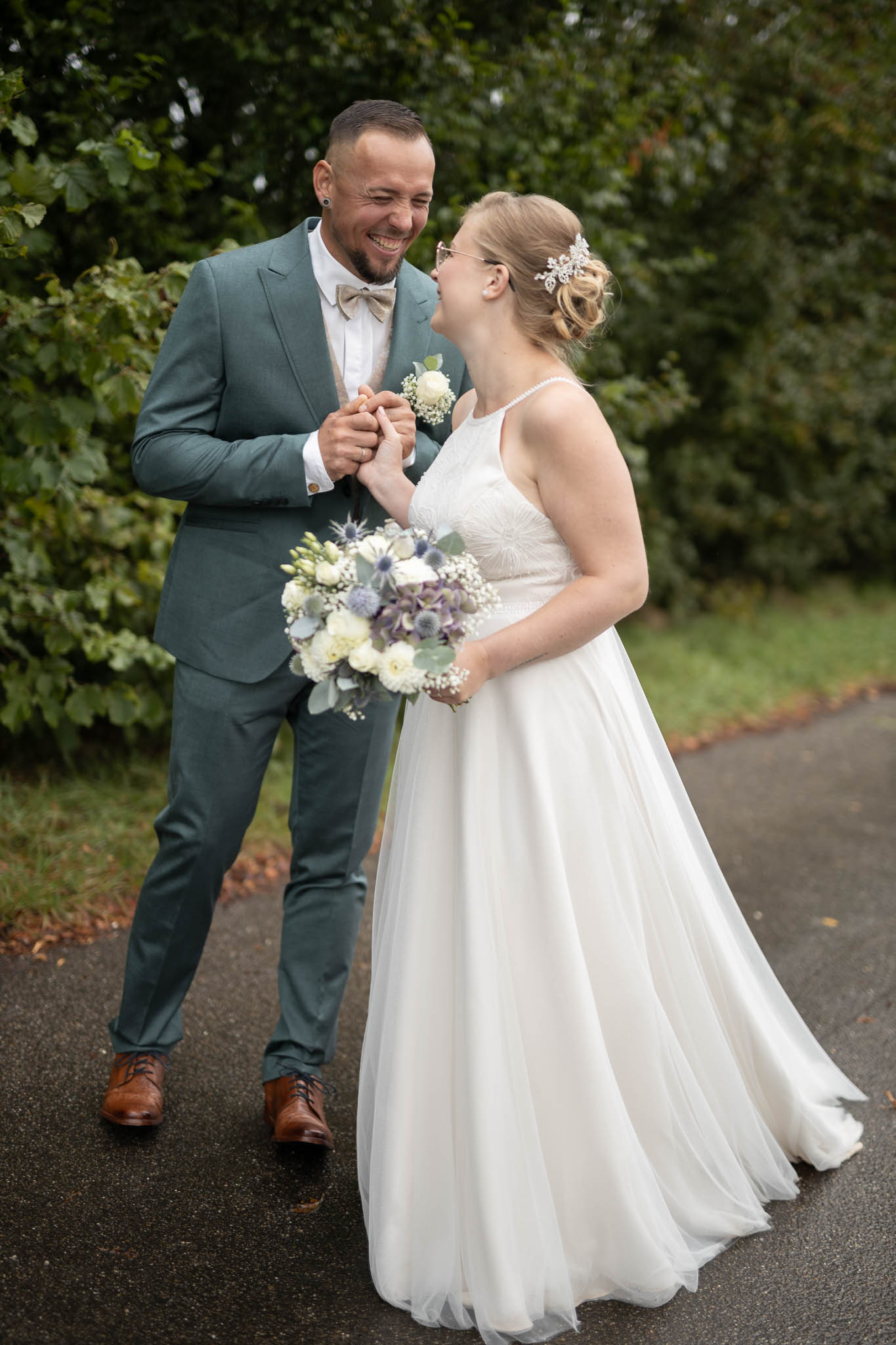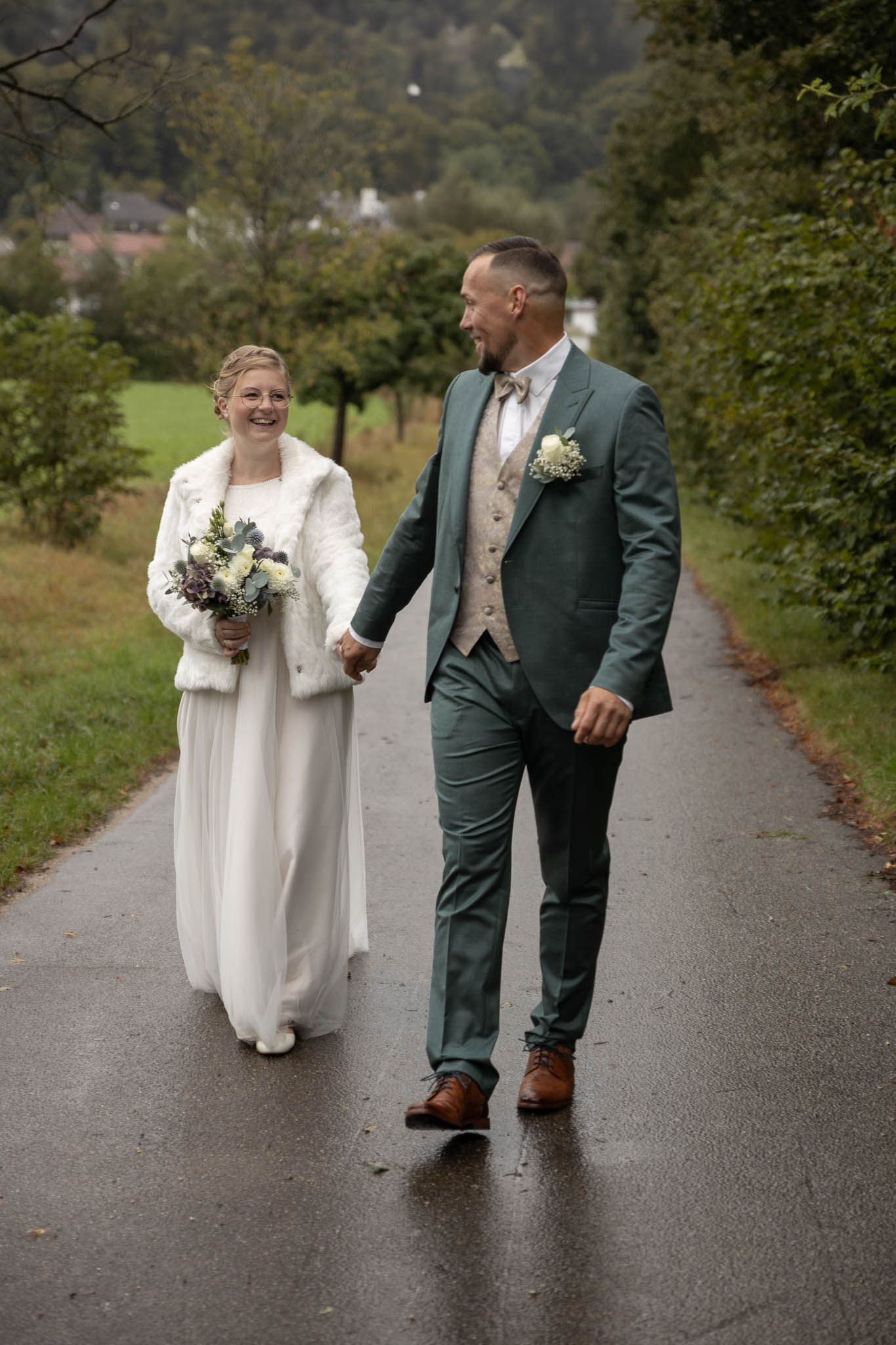 Wenn eine Hochzeit mit Shooting im stömenden Regen beginnt, dann ist das meist nicht das, was sich meine Brautpaare wünschen. Niemand möchte Regen am Hochzeitstag und doch kann genau das passieren. Kein Grund aber zur Panik, denn ganz oft finden sich ganz spontan trotzdem tolle Locations für euer Shooting. So war es auch bei Julia und Stefan, die ich im September 2024 begleiten durfte.